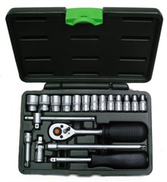 Набор смен-х гол-к (19пр)6гр.(кв.1/4") с принадлежностями с.г.4...14; воротки, пласт.футляр "Дело Техники" (арт.600719)