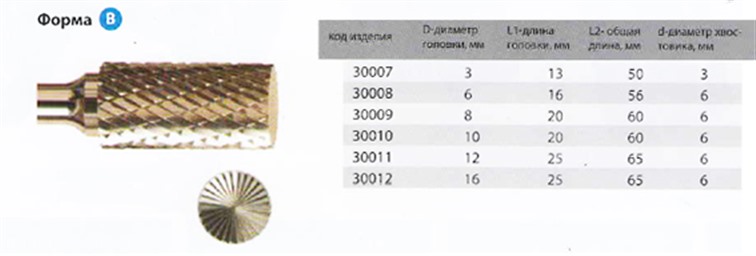 Бор-фреза т/с "G-cut" цилиндрическая с торцевым зубом "B" 10 мм, длина 20/60 мм, хвост. 6 мм (30010)