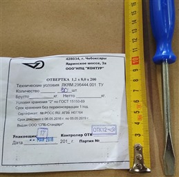 Отвертка плоская 225(215)х1,2х8,0 (д=6мм) (Чебоксары) (7810-1046) ГОСТ 17199-88